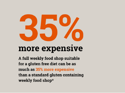 the weekly food shop suitable for a gluten free diet can be as much as 35% more expensive